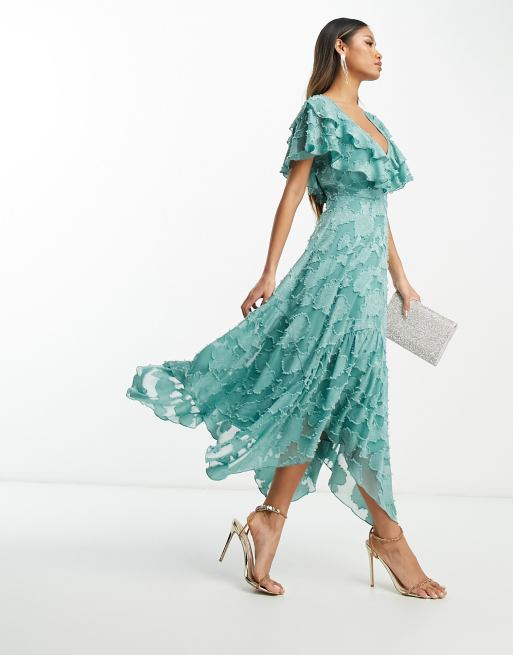 ASOS DESIGN v front v back ruffle midi dress with flutter sleeve Very well made.