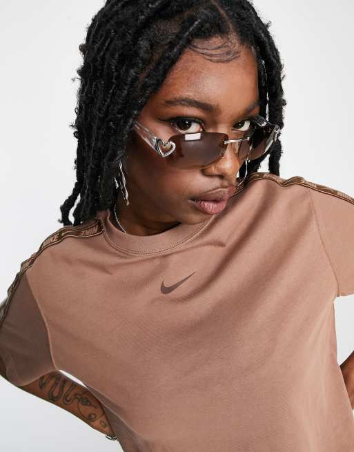 Nike Boyfriend T Shirt in Archaeo Braun mit Swooshband ASOS Very well made.