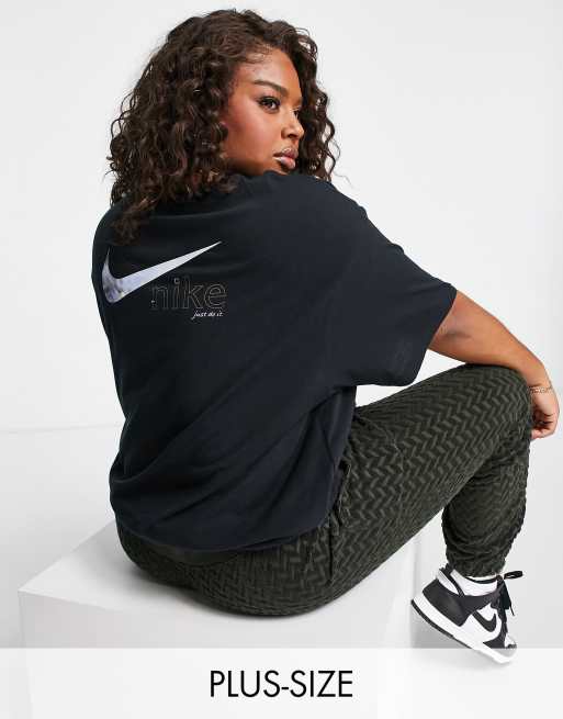 Nike Plus Boyfriend T Shirt in Schwarz mit Swoosh Logo Folienprint in Metallic Optik am Rucken ASOS Very well made.