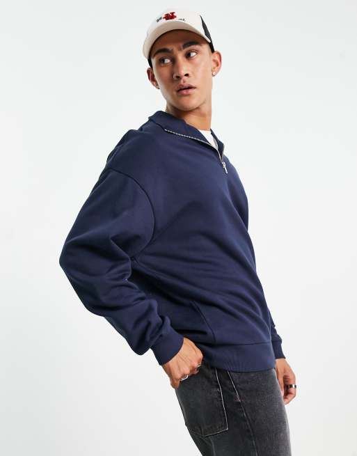 ASOS DESIGN Oversized Sweatshirt in Marineblau mit halblangem ReiBverschluss ASOS Very well made.