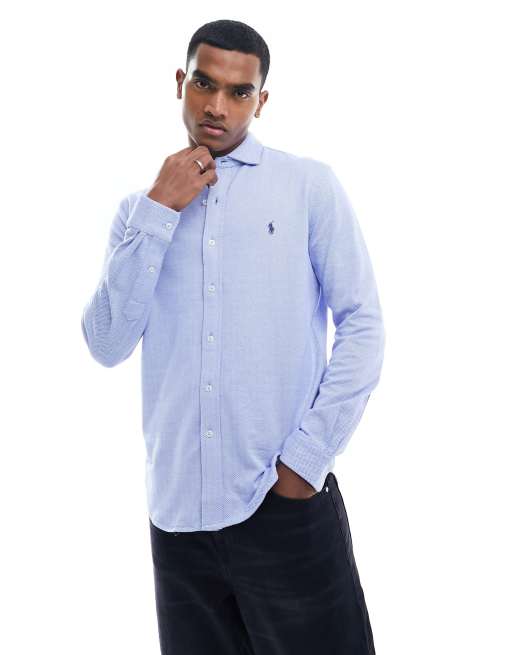 Polo Ralph Lauren Jersey Hemd in Blau WeiB mit Markenlogo und Fischgratmuster ASOS Very well made.