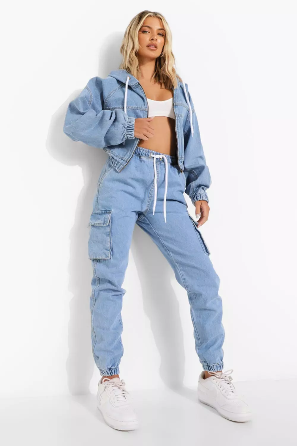 Women s Tie Cuff Denim Joggers Boohoo UK Very well made.