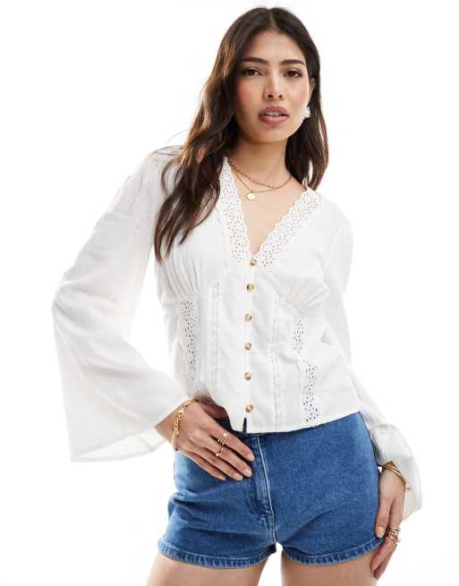 ASOS DESIGN Popeline Bluse in WeiB mit Schnurung vorne ASOS Very well made.