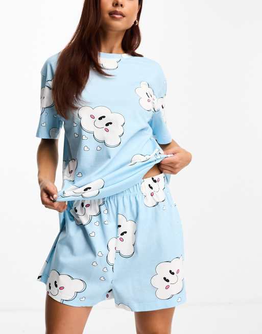 ASOS DESIGN cloud oversized tee short pajama set in blue ASOS Very well made.