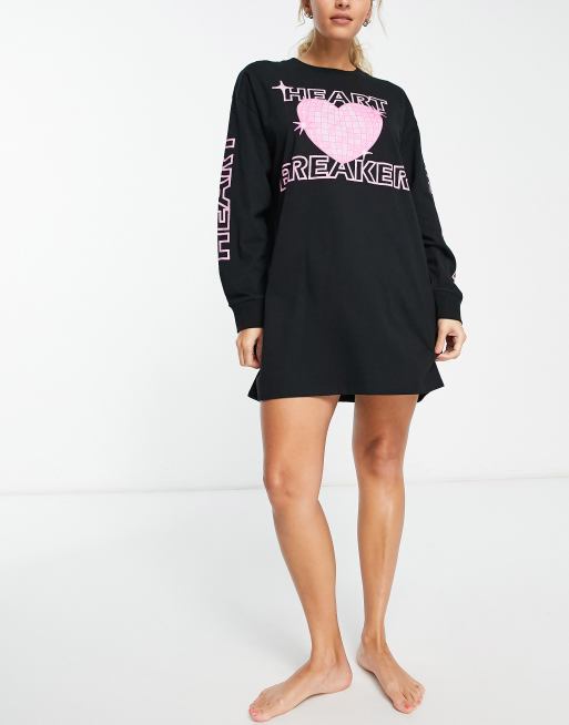 ASOS DESIGN disco heartbreaker long sleeve sleep tee in black ASOS Very well made.