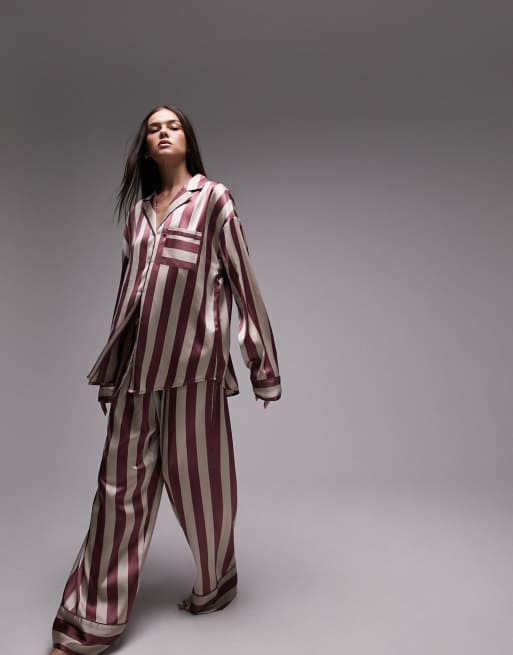 Topshop satin humbug striped print shirt and pants pajama set in Very well made.