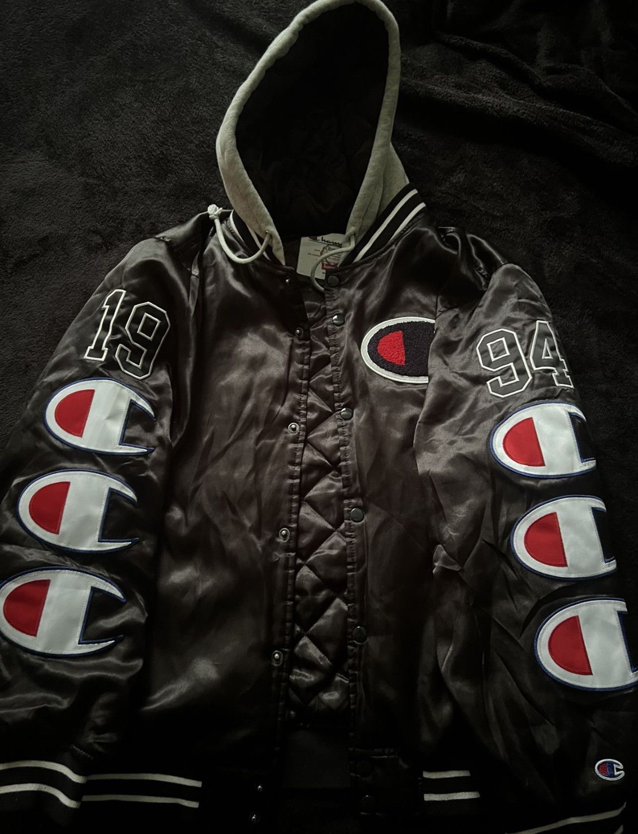 Supreme Supreme Champion Hooded Satin Varsity Jacket Grailed Very well made.