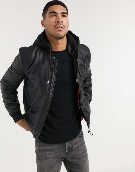 River Island hooded bomber jacket in black PU ASOS Very well made.