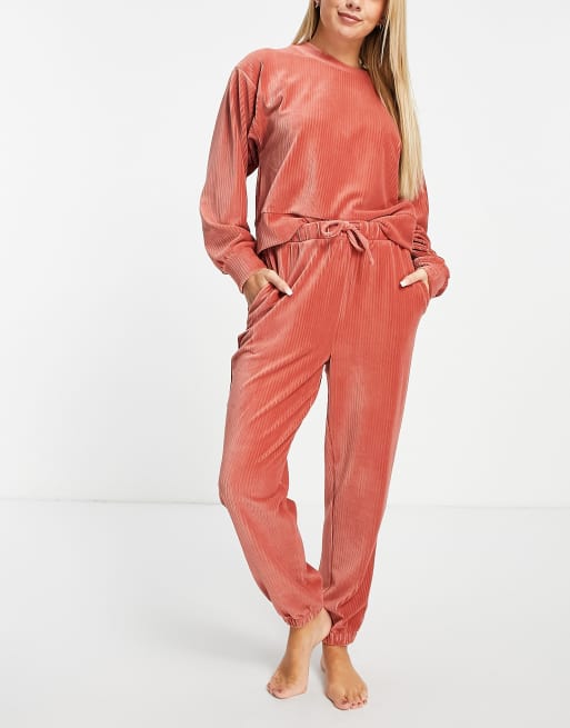 ASOS DESIGN lounge velour rib sweat jogger set in rust ASOS Very well made.