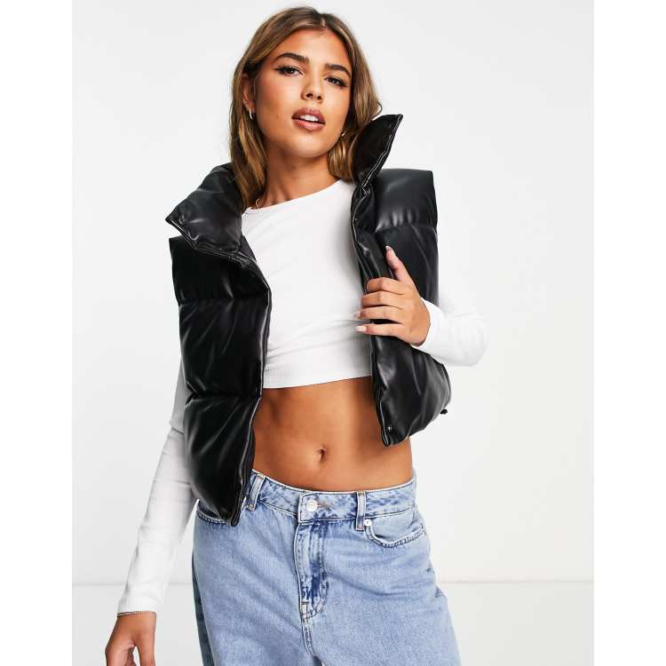 Stradivarius Doudoune courte sans manches imitation cuir Noir Very well made.