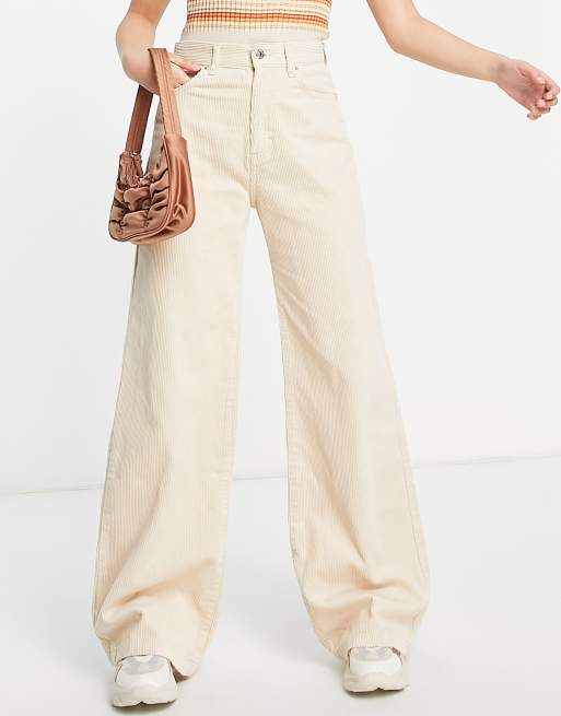 Pull Bear corduroy wide leg pants in ecru Very well made.
