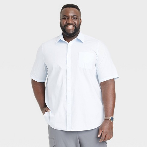 Men s Big Tall Slim Fit Short Sleeve Button Down Shirt Goodfellow Co Airy Blue LT Very well made.