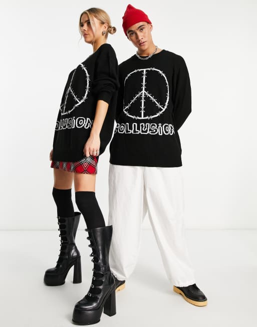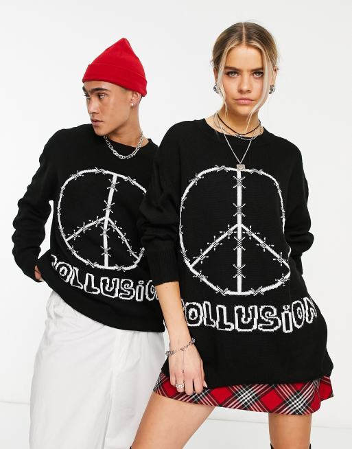 CoLLUSION Unisex Pull oversize en maille jacquard avec logo de la marque Noir Very well made.