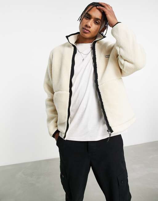 Pull Bear faux shearling jacket with zip in ecru ASOS Very well made.