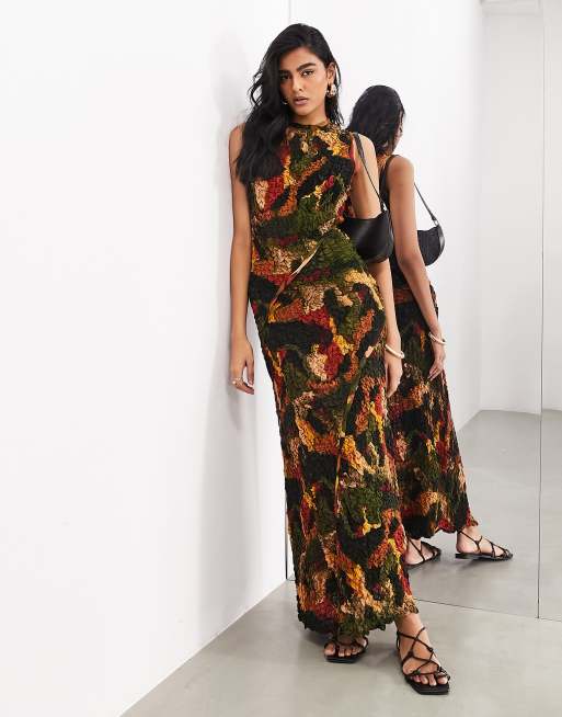 ASOS EDITION crinkle high neck sleeveless maxi dress in smudge print ASOS Very well made.