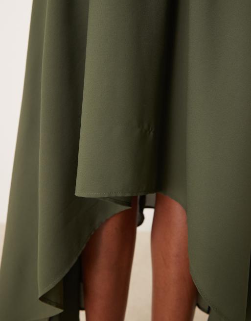 ASOS DESIGN floaty high low hem midi skirt in khaki ASOS Very well made.