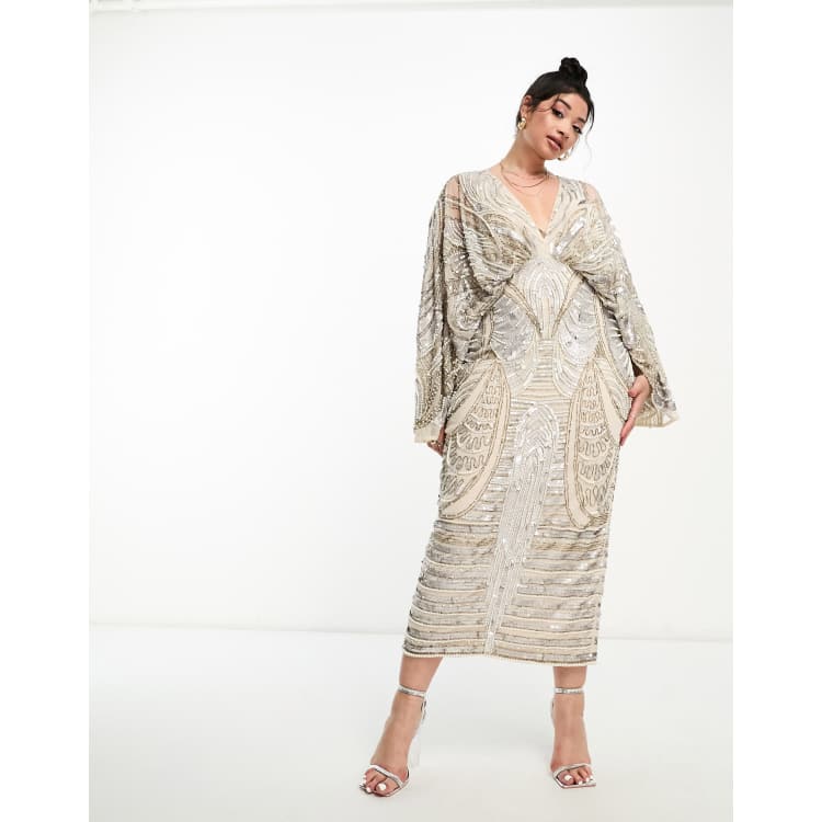 ASOS DESIGN Curve midi kimono dress in pearl and sequin patched embellishment Very well made.
