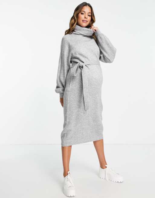 ASOS DESIGN Maternity knitted roll neck midi dress with tie waist in grey Very well made.