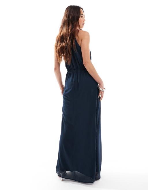 TFNC Tall Bridesmaids one shoulder maxi dress with pleated detail in navy ASOS Very well made.