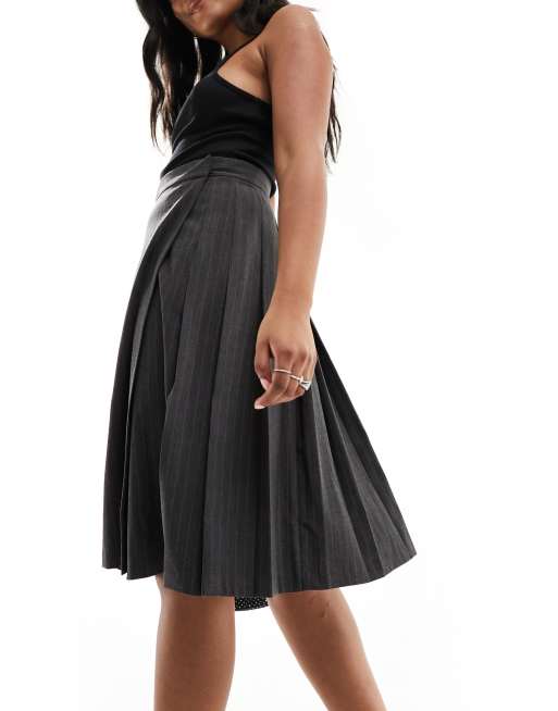 ASOS DESIGN tailored pleated midi skirt in gray pinstripe ASOS Very well made.