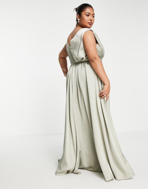 ASOS DESIGN Curve Bridesmaid satin maxi dress with wrap bodice in sage green Very well made.