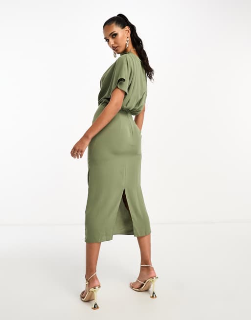 ASOS DESIGN Robe crayon mi longue structuree en jacquard a manches dome et col en V decoupe Vert et or Very well made.