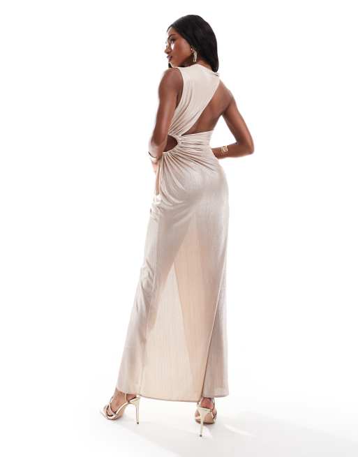 ASOS DESIGN metallic sleeveless twist detail maxi dress in rose gold ASOS Very well made.