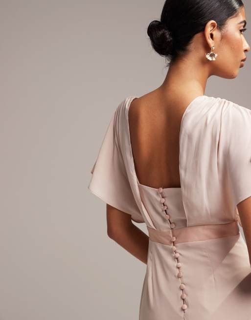 ASOS DESIGN Bridesmaid short sleeved cowl front maxi dress with button back detail Very well made.