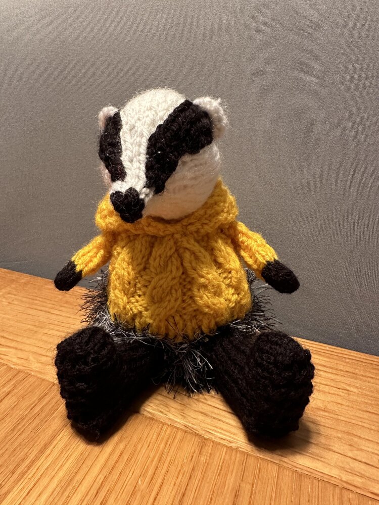 Badger Wearing Aran Jumper Hoodie Chocolate Orange Gift Bauble Cover Knitting Pattern Very well made.