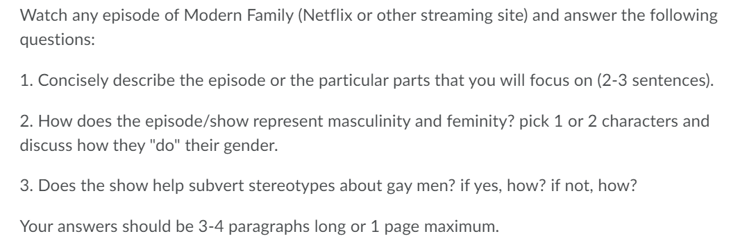 Watch any episode of Modern Family Netflix or other Chegg Very well made.