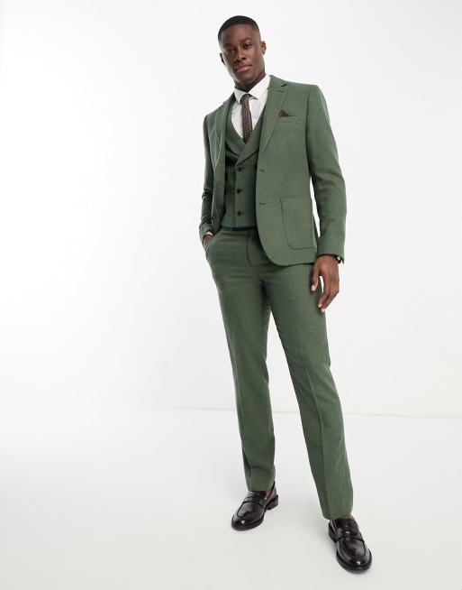 Harry Brown Veste de costume slim de mariage en laine m lang e Kaki Very well made.