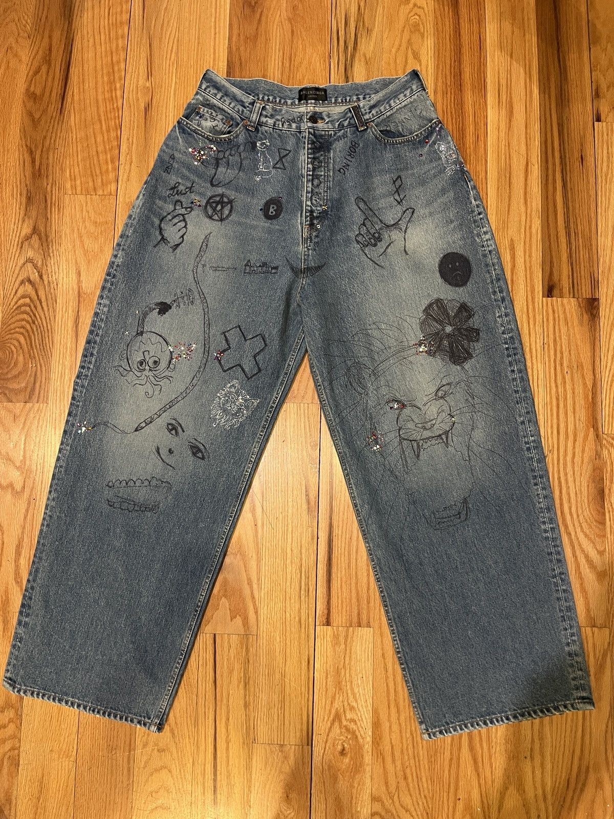 Balenciaga Balenciaga AW22 Rhinestone Scribble Baggy Denim Grailed Very well made.