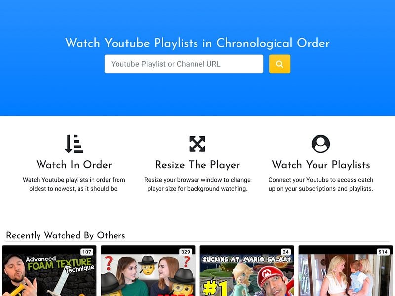 Watch YouTube Videos in Chronological Order from a Channel oldest Very well made.