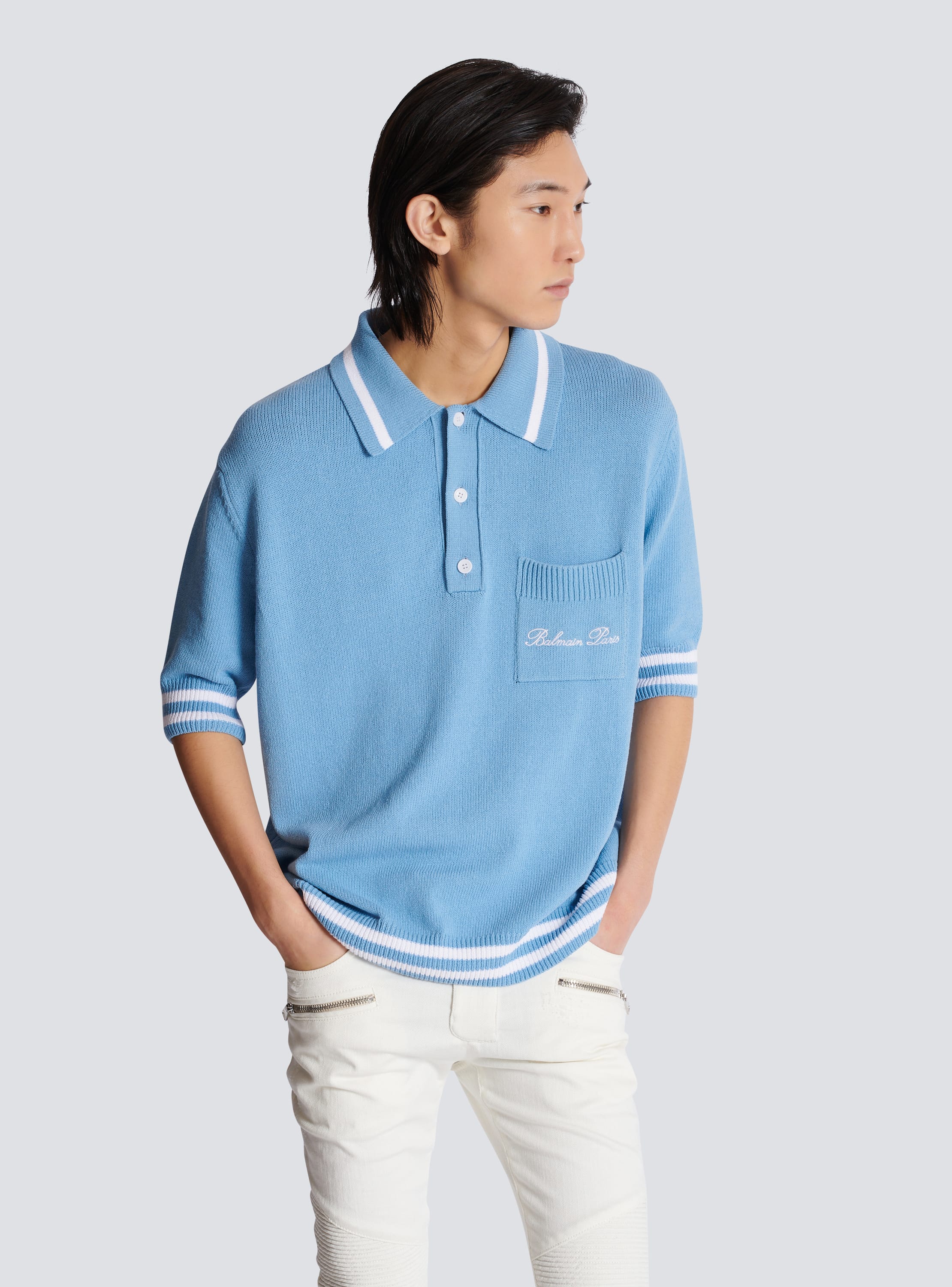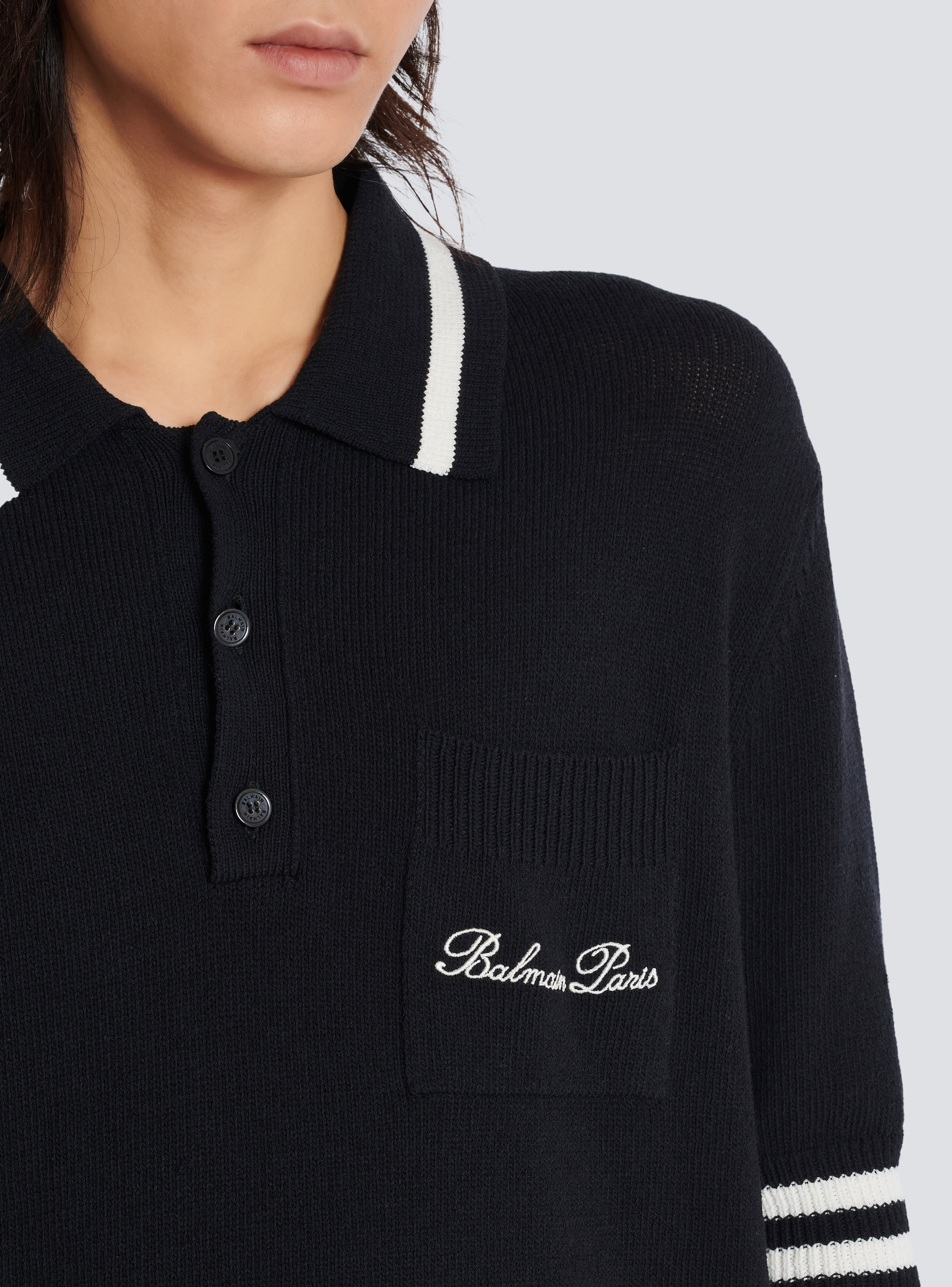 Wool polo shirt with Balmain Signature embroidery Very well made.