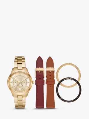 Runway Gold Tone and Leather Interchangeable Watch Set Michael Very well made.