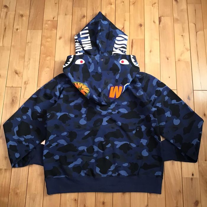 Bape 3XL BAPE Double Tiger Shark full zip hoodie Blue camo Very well made.