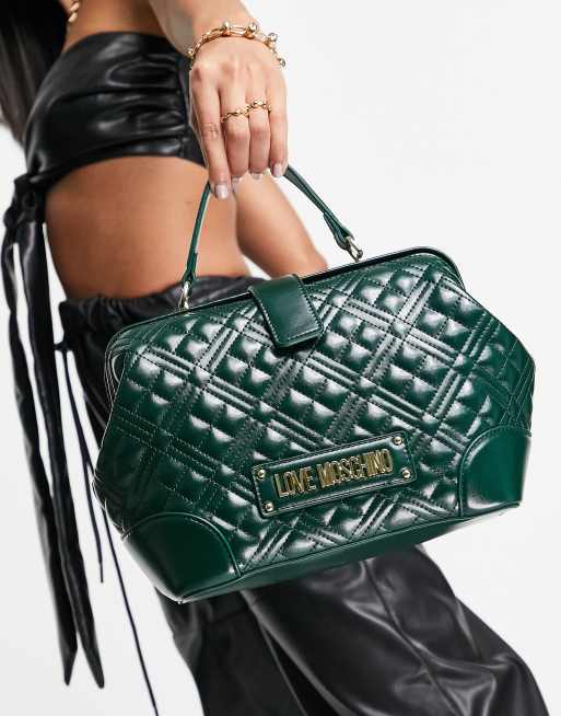 Love Moschino Borsa da spalla trapuntata verde scuro con manico Very well made.