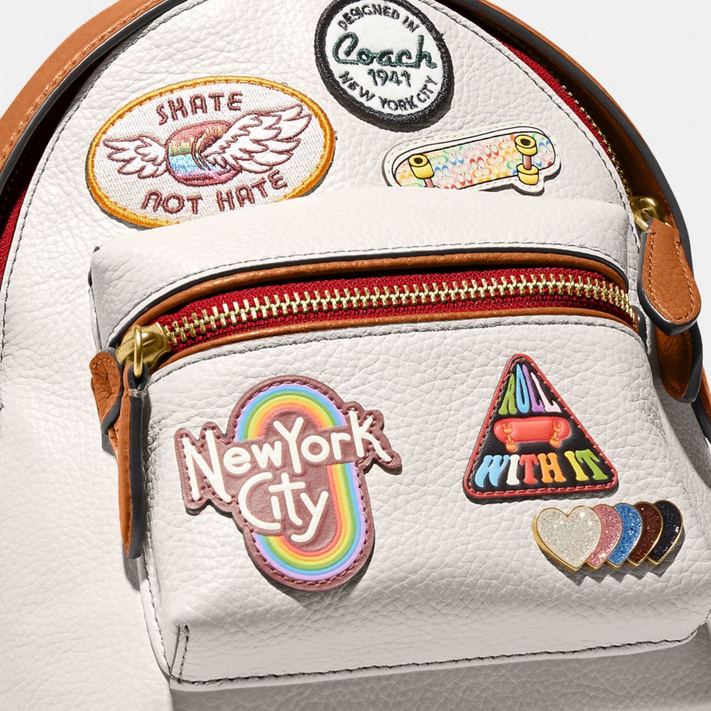 NWT COACH MINI COURT LEATHER BACKPACK WITH RAINBOW COACH GOLD CHALK PRIDE Very well made.