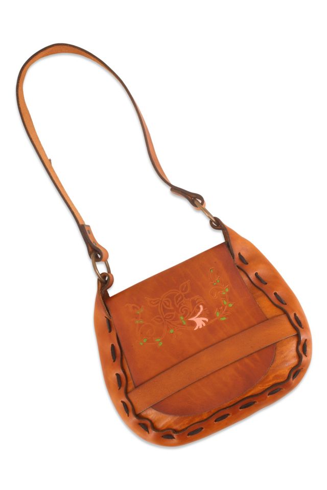 Vintage Tooled Leather Bag Hand tooled Western Style Floral Very well made.