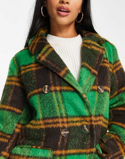 QED London Petite double breasted longline coat in green check Very well made.
