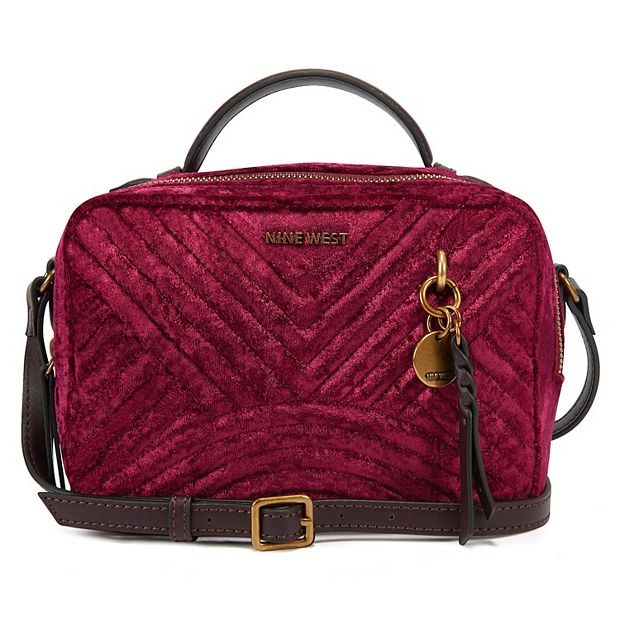 Nine West Velour Chelsea Camera Bag Purse Handbag Dark Garnet burgundy Very well made.