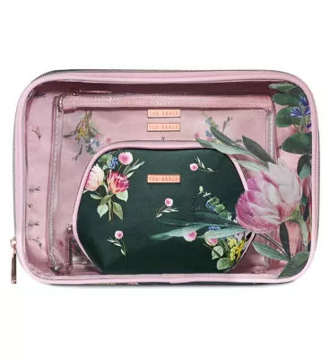 Ted Baker Make Up Wash Bag Cosmetic Travel Case Toiletry Bag Rose Gold Floral Very well made.
