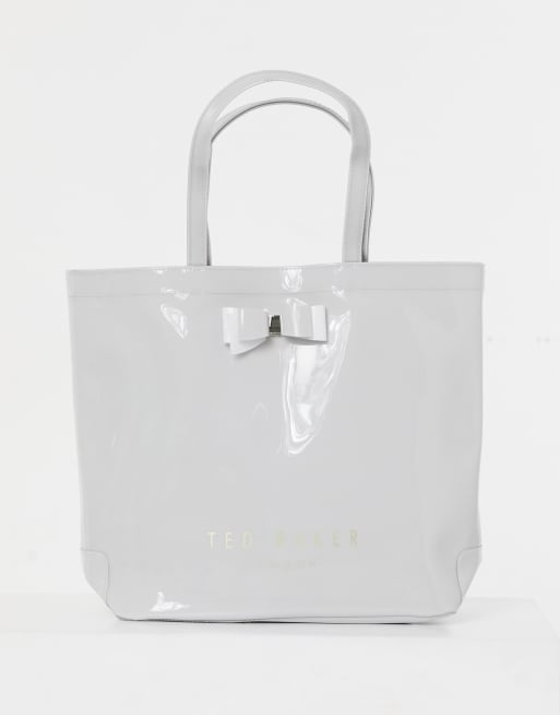 Ted Baker Hanacon patent bow large patent tote bag in gray Very well made.
