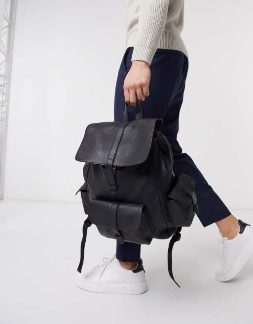 ASOS DESIGN leather backpack in black with multi pockets Very well made.
