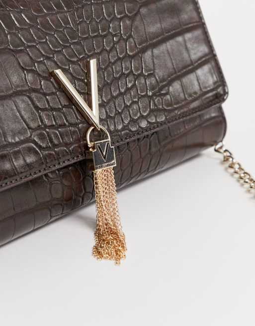 Valentino by Mario Valentino Audrey chocolate croc effect foldover cross body bag with chain Very well made.