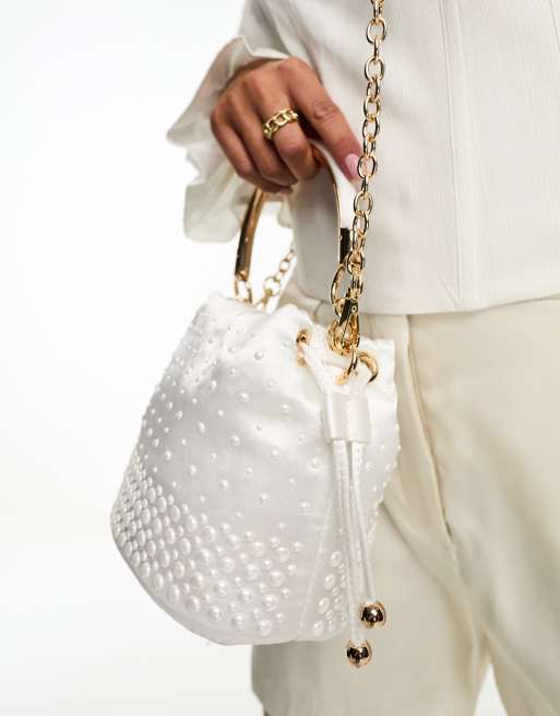 River Island cross body bucket bag with pearl detail in white ASOS Very well made.