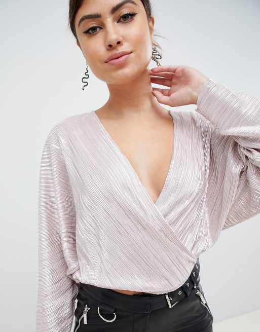 Buy Wallis Wrap Batwing Sleeves Sequins Jersey Top In Silver Very well made.