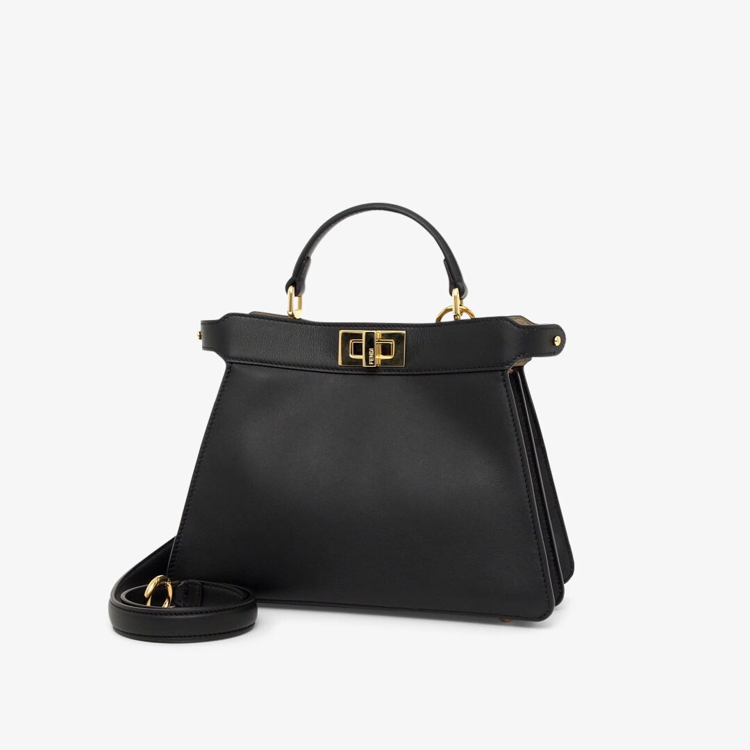 Fendi PEEKABOO REGULAR Leather 2way handbag Black 8BN290 Turn lock Very well made.