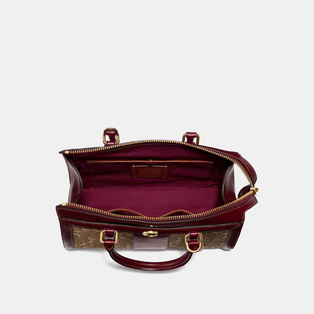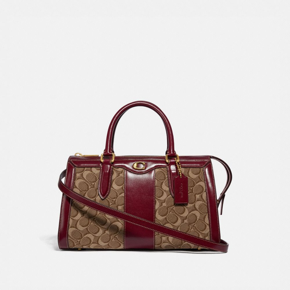 Coach Burgundy Black Signature Canvas and Leather Darcie Carryall Very well made.