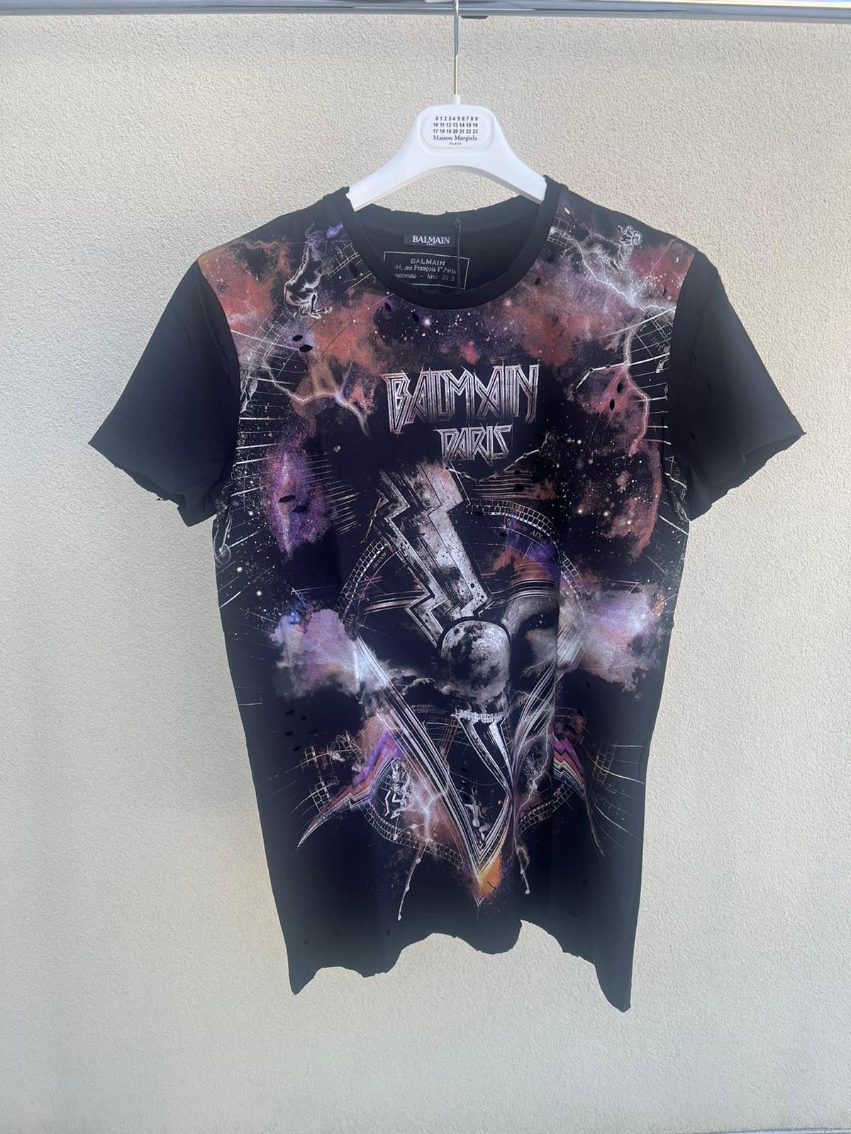 Balmain Distressed Galaxy T Shirt SS in Black Multicolor TOP DRWR Very well made.